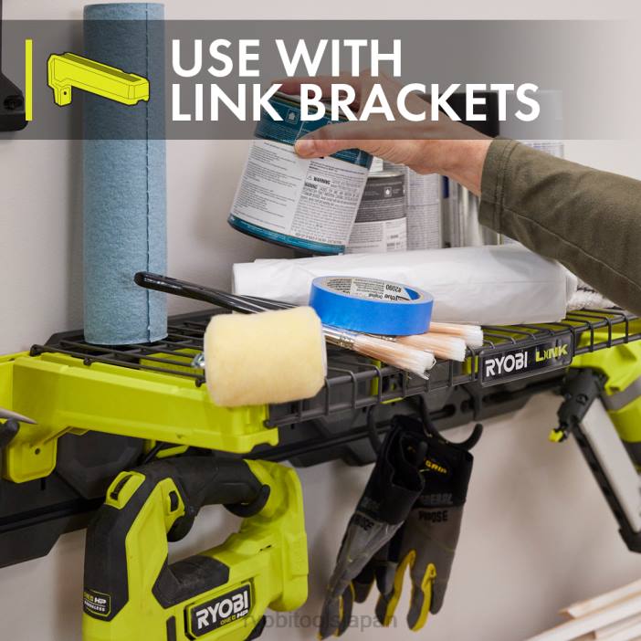 リョービ リンク モジュラー ストレージ システムはストレージ業界に革命をもたらし、日常生活の整理、アクセス、輸送を可能にします。リョービ リンク 21 インチ ワイヤー シェルフは、リンク 2-in-1 シェルフ ブラケットと一緒に使用するように設計されています。2 つの 2-in-1 ブラケットを使用して 1 つのシェルフを保持するか、3 番目のブラケットを追加して 2 つのシェルフを隣り合わせに保持し、共有します中央のブラケットは、3.5 フィートの棚スペースを提供します。追加のブラケットと棚を 1 つ続けて追加して、棚システムを拡張していきます。棚はブラケットの上に高くなっているので、追加の収納用に棚の下の壁レールにフックを設置できます。ワイヤーフォームデザインにより通気性が向上し、すべての素材を乾燥した状態に保ちます。何よりも、これはリョービリンクモジュラーストレージシステム製品ラインの一部であり、ame ロック技術により、モバイルと据え置き型のストレージのニーズをシームレスに接続します。リョービ リンク モジュラー ストレージ システムでスペースを所有しましょう。