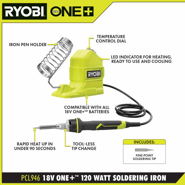 リョービは、18v one+ 120 ワットのはんだごてを発売します。この革新的なはんだごては究極の機動性を提供し、作業スペースに直接持ち運ぶことができます。 90秒以内に完全に加熱され、安全に保管できるアイロンホルダーが付いています。温度制御ダイヤルを使用すると、温度を 400 ~ 900 度の間で設定および維持できます。 LED ステータス インジケーターにより、ツールがいつ加熱しているのか、いつ最高温度に達しているのか、いつ冷却しているのかがわかります。また、到達距離が 3 フィートであるため、手の届きにくい場所にあるアプリケーションにアクセスできます。リョービの 3 年間のメーカー保証が付いているはんだごてには、先細チップ、はんだコイル、18v 1+ 1.5ah リチウムイオン電池、充電器、取扱説明書が含まれています。