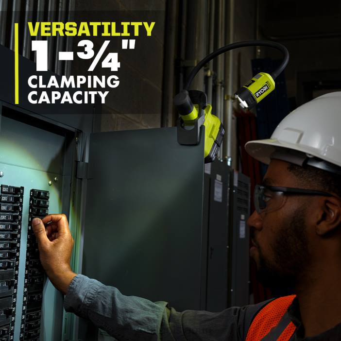 ryobi 18v one+ フレキシブル LED クランプ ライトを使用して、ryobi 18v one+ システムを拡張します。パイプやツーバイ材など、厚さ 1-3/4 インチまでの材料にクランプできるため、このライトは取り付けが簡単です。このクランプ ライトは、投光モードで最大 400 ルーメンの LED 光出力を生成し、あらゆる場所を照らします。独自のヘッドにより、ヘッドを引くだけでフラッド モード (400/200 ルーメン) からスポット (200/100 ルーメン) モードまで調整でき、各モードで 2 つの明るさ設定 (高/低) を循環して完全に調整できます。照明をカスタマイズします。このライトの 16 インチの柔軟なネックと回転ベースにより、ハンズフリーの照明と照明の正確な配置と操作性が可能になります。弱モードで 32 時間以上のランタイムが持続するこのライトは、暗闇の中に取り残されることはありません。この18VフレキシブルLEDクランプライトが戻ってきましたリョービの 3 年間メーカー保証があり、(1) pcl665 18v one+ LED フレキシブル クランプ ライトと (1) 取扱説明書が含まれています。バッテリーと充電器は別売りです。