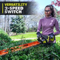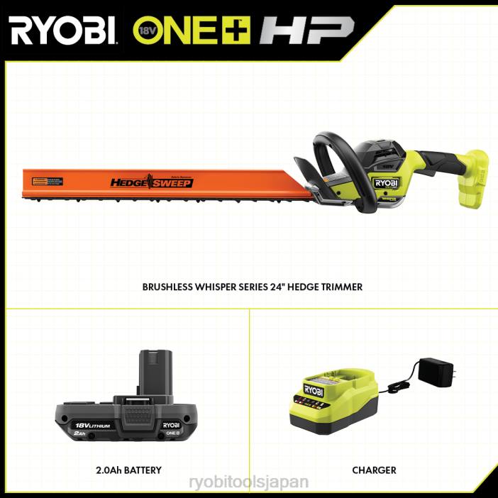 リョービ 24″ 18v one+ hp ブラシレス ヘッジトリマーは、家の周りのあらゆる生垣のメンテナンスに最適です。ウィスパー シリーズのテクノロジーは、ノイズなしですべてのパワーを提供します。ユーザーは 1 日中いつでも作業できるようになります。プレミアム HP ブラシレス モーターは、より多くのパワー、より長い稼働時間、より長いモーター寿命を提供します。one+ ヘッジトリマーは、付属の耐久性のあるマグネシウム ギア ボックスによりこれまでよりも軽量になり、依然としてパワーを提供します。より高い電圧のラインから期待されるものです。このトリマーは、トリミング中に最適な電力を供給する 2 スピード スイッチを備えています。24 インチのデュアル アクション ブレードと 1 インチの切断能力により、このヘッジ トリマーは最も硬い生け垣にも対応できます。このトリマーにはラップが付いています。 – フロントハンドルと人間工学に基づいたリアハンドルの周りに快適性を向上。トリミング中に切り抜きや破片を取り除くことができる EEP デザイン。このトリマーには 2.0 Ah のバッテリーと充電器も装備されています。このツールには 3 年間の限定保証が付いています。