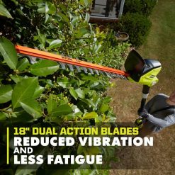 - 18 インチ デュアル アクション ブレードと 5/8 ” 生垣に取り組むための容量を削減します