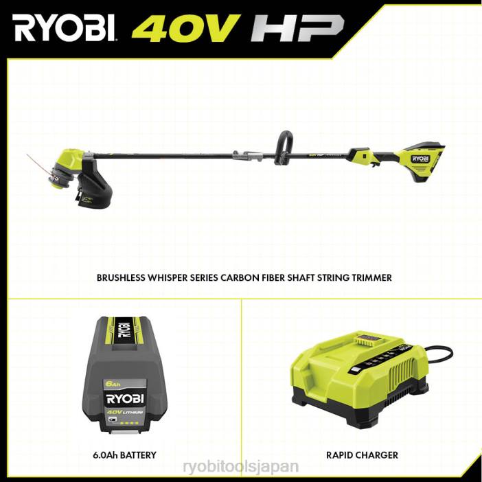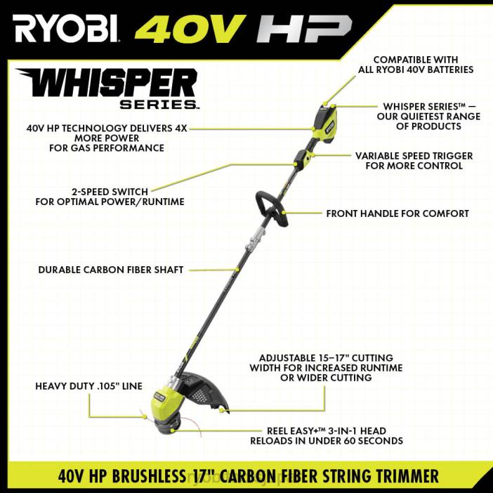 40v hp ブラシレス ウィスパー シリーズ 17 カーボンファイバー シャフト ストリング トリマー キット RYOBI XJJH285 屋外
