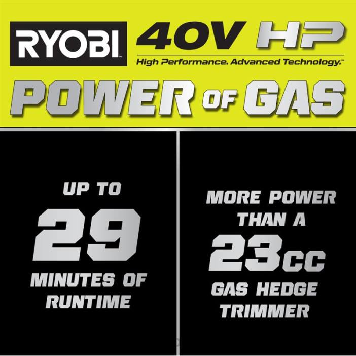- 40v hp テクノロジーは、23cc ガスヘッジトリマーよりも多くの電力を供給します