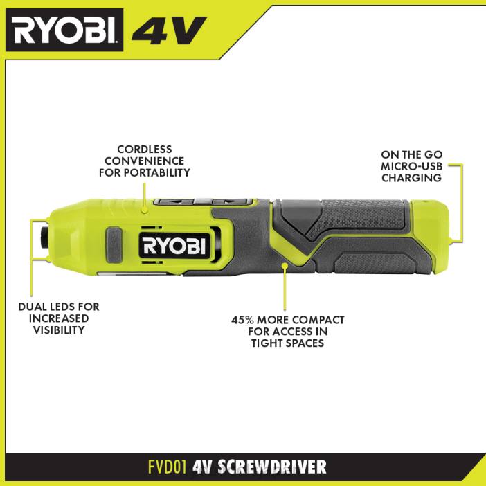 リョービから4Vドライバーが登場。このツールは、以前のモデルと比較して 45% コンパクトになり、狭いスペースでのアクセスが容易になりました。コードレスの利便性により、あらゆる用途での持ち運びが可能になります。マイクロUSB充電ケーブルと2つのネジ締めビットが含まれています。この 4V ドライバーにはリョービの 2 年間のメーカー保証が付いており、fvd01 ドライバー、USB 充電ケーブル、ドライバービット (2 本)、および取扱説明書が含まれています。