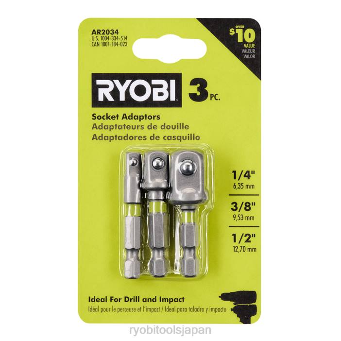 リョービの耐衝撃ソケットアダプターは、インパクトドライバーの使用に伴う高トルクと要求に耐えるように作られています。これらのソケットアダプターは長さ 2 インチで、ドリルやインパクトドライバーに直接フィットする 1/4 インチの六角シャンクを備えています。セットには 1/4 インチ、3/8 インチ、1/2 インチのアダプターが含まれています。