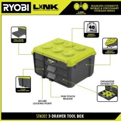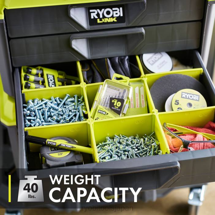 リョービ リンク モジュラー ストレージ システムは、ストレージ業界に革命をもたらし、日常生活の整理、アクセス、持ち運びを可能にします。リョービリンクの3段引き出しツールボックスは、最も厳しい状況でも工具を保管できます。耐衝撃性素材と40ポンドの耐荷重を備えています。収納可能なスチール製ロックバーと安全なロックポイントでポータブルツールストレージを簡単に保護します。フルエクステンションスライドはスムーズな操作を提供し、付属のオーガナイザーディバイダーセットはリョービツールを最大限に整理整頓し、小さな部品を所定の位置に保ちます。リョービリンクのモバイルストレージアイテムにシームレスに積み重ねられます。これはあなたのモバイルツールボックスのラインナップに加えるのに最適です。何よりも、これは同じLOを使用するRyobi Linkモジュラーストレージシステム製品ラインの一部です。モバイルストレージと据え置き型ストレージのニーズをシームレスに接続するためのッキングテクノロジー。リョービ リンク モジュラー ストレージ システムでスペースを所有しましょう。