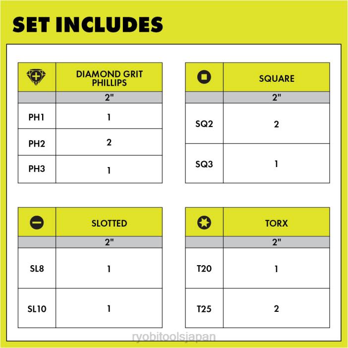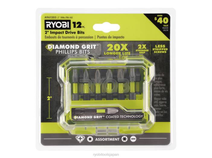 リョービ ダイヤモンド グリット コーティング技術であなたの工具コレクションをさらに充実させましょう。この12個のPC。 2 インチ ダイヤモンド インパクト ドライブ ビットには、ダイヤモンド コーティングされたインパクト プラス ビットと追加の耐衝撃性ドライブ ビットが含まれます。ダイヤモンド グリット コーティング技術により、追加の保護層が提供され、寿命が 20 倍長くなり、すべてのプラス ネジ駆動用途でビットの耐久性が向上します。ダイヤモンド グリットは、 2 倍強力なグリップにより、打ち込み前の強力な保持とビットへのファスナーの固定が可能になります。この追加されたグリップにより、磁力を帯びたビットと同様の体験が得られますが、より確実な保持が可能です。ダイヤモンド グリット コーティング技術がフィリップスにしっかりとつかみます。運転中にファスナーを締めると、プラスの頭が剥がれるのを防ぐため、より良いフィット感が得られます。彼のセットは、プロやDIYユーザーのニーズに対応できる幅広い運転ソリューションを提供します。この12個のPC。 2 インチ インパクト ドライブ ビットは標準のドリルおよびインパクト ドライバーと互換性があり、(1) 2 インチ ダイヤモンド ph1、(2) 2 インチ ダイヤモンド ph2、(1) 2 インチ ダイヤモンド ph3、(1) t20、(2) t25、( 1) sl8、(1) sl10、(2) sq2、および (1) sq3。