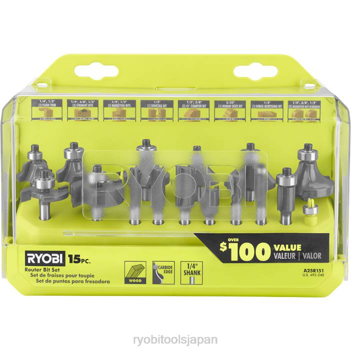 リョービ 15pc ルーター ビット セットは、あらゆるプロジェクトに最も人気のあるルーター ビットの品揃えを提供します。これらのルータービットは、コンパクトな保護ケースに入った 1/4 インチのシャンクを備えています。このビットは、装飾的なエッジング、接合、トリミングに最適です。