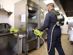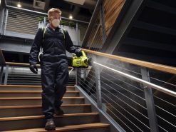 ホームセンターで今すぐ購入 prothe ryobi 18v one+ コードレス 1 ガロン静電噴霧器を使用すると、バッテリー電源の便利さと自由度を利用して、水溶性消毒剤やその他の洗浄液を噴霧できます。リョービの静電噴霧器は、クラス最高の静電帯電技術を利用して、噴霧される溶液中の粒子を正に帯電させ、より迅速かつ良好な表面の被覆を実現します。これらの荷電粒子により、溶液がより効果的にさまざまな表面に付着し、カバーできるようになります。付属の 18v one+ バッテリーを使用すると、1 回の充電で最大 30 ガロンをスプレーできます。この噴霧器には 2 つの 18V バッテリー + 2.0 AH バッテリーが付属しており、適用範囲を 2 倍にします。快適なバックパックのデザインにより、快適な片手操作が可能になり、ホルスターは適切なデザインになっています。右利き用または左利き用です。従来のスプレーに最適な化学薬品を使用する場合は、オン/オフ スイッチをオンにして静電技術を有効にするか、無効にします。 3-in-1 調整可能なノズル セレクターを使用すると、さまざまなスプレー用途に合わせて 3 つのスプレー パターンから選択できます。ノズルを回して低、中、高を選択するだけで、最大 2 フィート離れたところに 65 ミクロン、最大 5 フィート離れたところに 85 ミクロン、最大 10 フィート離れたところに 160 ミクロンをスプレーします。大きな 1 ガロンのタンクは、充填時の持ち運びを容易にするハンドルが付いているように設計されており、余分な液体の除去やタンクの切り替えの際にユニットから簡単に取り外すことができます。