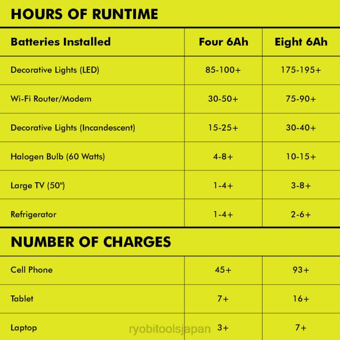 ryobi 18v one+ 1800 ワット パワー ステーションを使用して ryobi 18v one+ システムを拡張します。現場、荒野、または停電時の自宅にいても、この発電所はデバイスを稼働状態に保つのに最適です。 18v one+ バッテリーを使用するこのユニットは、携帯電話、ラップトップ、照明、さらにはテレビや冷蔵庫などのデバイスに電力を供給するために、起動時 3,000 ワットと実行時 1,800 ワットを供給します。 12ah 18v リチウム電池を 8 個使用すると、このユニットはフルサイズの冷蔵庫に最大 28 時間、55 インチ LED テレビに 14 時間以上電力を供給できます。静かな動作とゼロエミッションを特徴とするこの発電所は、屋外でも屋内でも安全に使用できます。純粋な正弦波テクノロジーによりクリーンな電力出力が可能になり、敏感な電子機器との互換性が保証されます。ホットスワp 機能により、電源を中断せずにバッテリーを交換できます。このパワーステーションには 60 ワットの USB-C 充電ポートも備えており、壁の充電器、カーアダプター、またはソーラーパネルを介して 8 個のバッテリーを順番に充電できます。 ryobi gencontrol アプリを使用して、発電所をリモートで監視および制御します。このアプリには、出力、バッテリーレベルなどが表示されます。何よりも、これは ryobi one+ システムの一部であり、18v one+ バッテリーはすべての 18v one+ 製品で動作します。この 18v one+ 1800 ワット パワー ステーションには ryobi の 3 年間メーカー保証が付いており、ryi818bt 18v one+ パワー ステーション、保護カバー、充電アダプター、USB-C ケーブル、および取扱説明書が含まれています。バッテリーと充電器は別売りです。