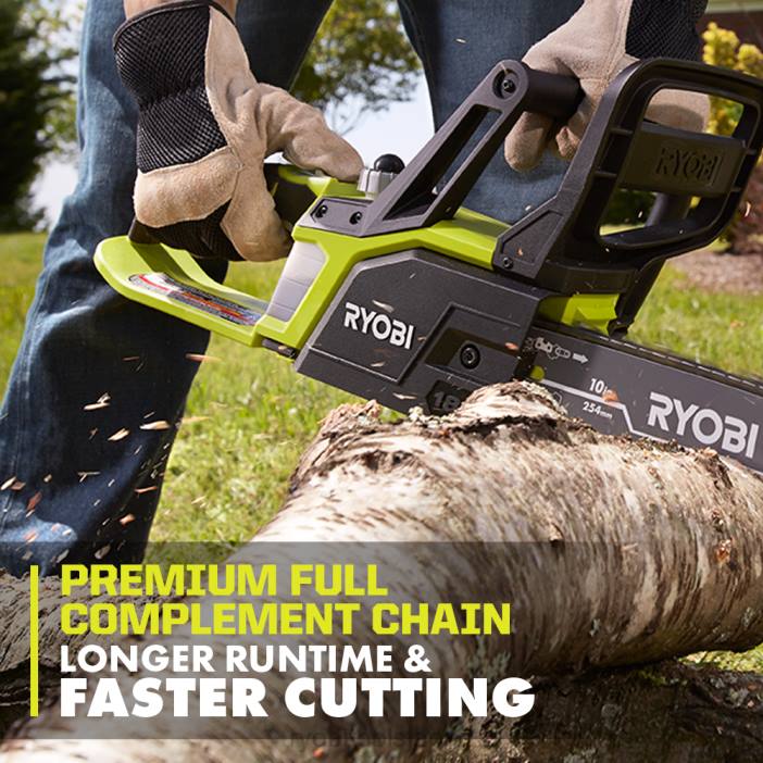 18v one+ 10 インチ チェーンソー キットでリョービ 18v one+ システムを拡張します。 10 インチのバーと強力なモーターを備えたこの鋸は、1 回の充電で最大 32 回の切断が可能で、家の周りの木の剪定や枝払いに最適です。プレミアムフルコンプリメントチェーンは、より長い実行時間とより高速な切断を実現し、最大 8 インチの丸太を切断します。ガスやコードの煩わしさを感じることなく、トリガーを引くだけで卓越したパフォーマンスを体験してください。利便性をさらに高めるために、自動給油機、工具付きチェーン張力調整機能、および車載工具保管庫が装備されています。 ry10c1 10″ 交換用チェーンと互換性があります。rybio24 バーとチェーン潤滑剤を忘れないでください。何よりも、これは ryobi one+ システムの一部であり、18v one+ バッテリーはすべての 18v one+ 製品で動作します。この 18v one+ 10′ ‘ チェーンソーは によって支えられていますリョービの 3 年間のメーカー保証には、18v 1.5ah バッテリー、18v 充電器、六角レンチ、鞘、取扱説明書が含まれています。