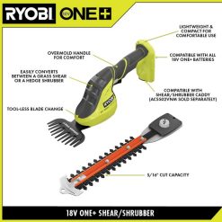 18v one+ シアー/シュラバー キットを使用して 18v one+ システムを拡張します。強力なモーターは、1 分あたり 1,200 ストロークで詳細なトリミングを実現します。付属の 18v 1+2ah バッテリーで最大 1 時間 37 分のランタイムをお楽しみいただけます。 5/16 インチのカット能力を備えた 8 インチの低木を使用して、小さな生垣に正確に取り組みます。工具を使わずに刃を交換するだけで、数秒で灌木から剪定ばさみに素早く移行できます。郵便受けや花壇の周りなど、芝刈り機が届かない狭い場所にある草や雑草のパッチを、4インチの草刈り刃でトリミングします。ガスやコードの煩わしさを感じることなく、トリガーを引くだけで卓越したパフォーマンスを体験できます。デュアルアクションブレードを使用すると、振動を軽減し、疲労を軽減しながら生垣を力強く通過できます。コンパクトで軽量ht デザインは疲労を軽減し、デリケートな領域での作業時のコントロールを向上させます。さらに、この剪断/灌木は剪断/灌木キャディと互換性があり、直立切断が可能になり、快適性とアクセス性が向上します (キャディは別売りです)。何よりも、これは ryobi one+ システムの一部です。どの 18v one+ バッテリーでも、どの 18v one+ 製品でも動作します。ハサミ/シュラバーとバッテリーには 3 年間のメーカー保証が付いています。このキットには、p2908 18v 剪断シュラバ、pbp006 18v 2ah リチウムイオンバッテリー、pcg002 18v 充電器、4 インチ草刈りブレード、8 インチシュラバブレード、および取扱説明書が含まれています。