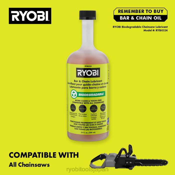 リョービの生分解性バー&チェーン潤滑剤を使用すると、クリーンで毒素のない作業が可能になります。この環境に優しい潤滑剤は植物由来の生分解性材料から作られています。石油を含まないため、あらゆる環境で安全に使用できます。水で簡単に洗い流せるので、舗装や衣服を汚しません。この潤滑剤は、高い熱容量と摩耗の軽減によりバーとチェーンを究極的に保護します。ハイタックフォーミュラはスリングとスローオフを軽減します。リョービの生分解性バー & チェーン潤滑剤は、すべてのチェーンソーと互換性があります。