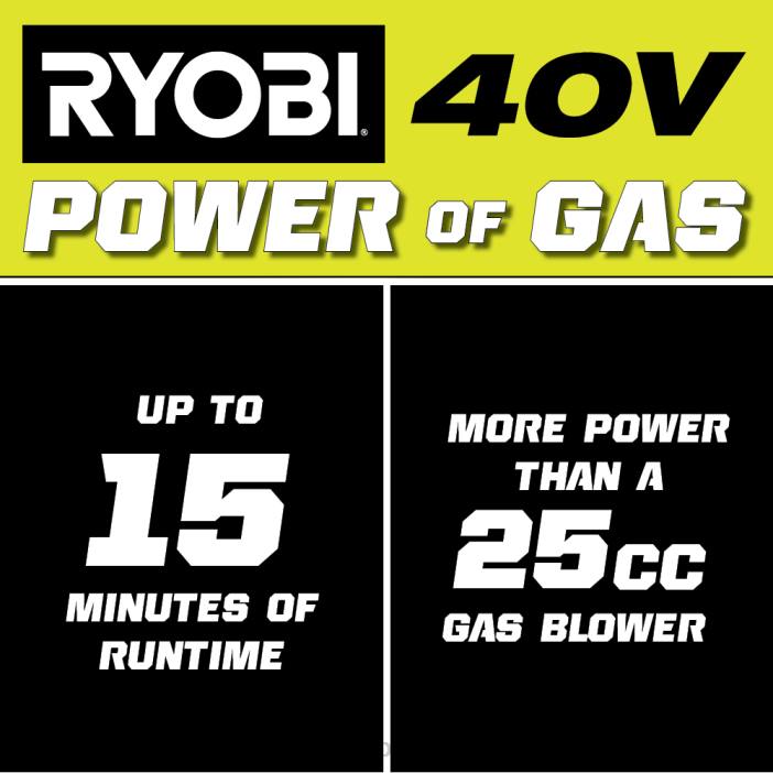 - 最長 15 分の稼働時間付属の 40v 4ah バッテリーを使用すると、40v ジェット ファン ブロワー キットでリョービ 40v システムを拡張できます。