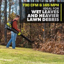 - 730 cfm および 165 mph濡れた葉や重い芝生の破片に最適です。