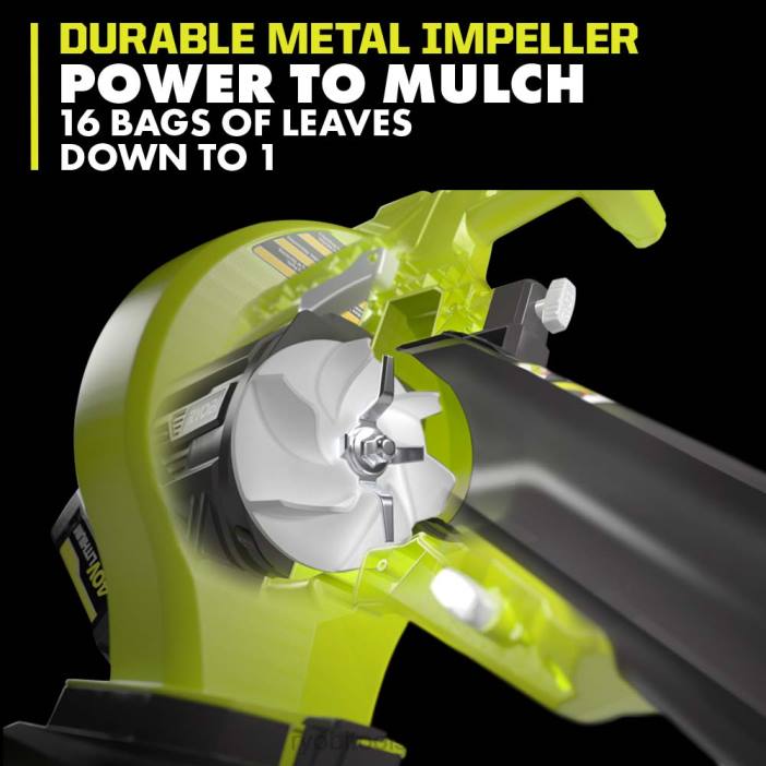 - 耐久性のある金属製インペラにより、16 袋の落ち葉を 1 枚までマルチングできます。